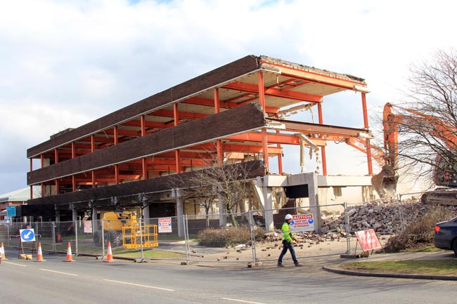 The demolition of the three-storey structure on Central Avenue, built in the 1960s, cost £86,000 and our picture above shows how it’s today (Friday) almost finished.